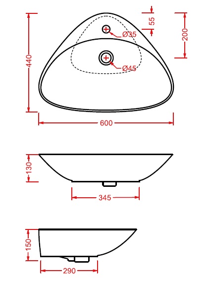 Artceram Plettro Umywalka Stawiana na Blat 60x45cm Biała L2100 / PTL00101;00
