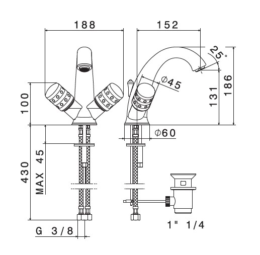 Newform Deluxe Prestige Bateria umywalkowa jednootworowa z korkiem chrom 68125.21.018