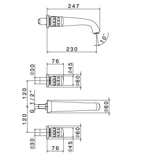 Newform Deluxe Prestige Bateria umywalkowa ścienna 3-otworowa część zewnętrzna chrom 68130E.21.018