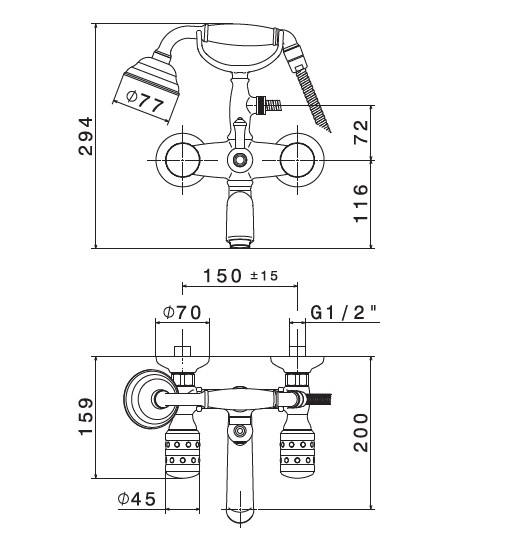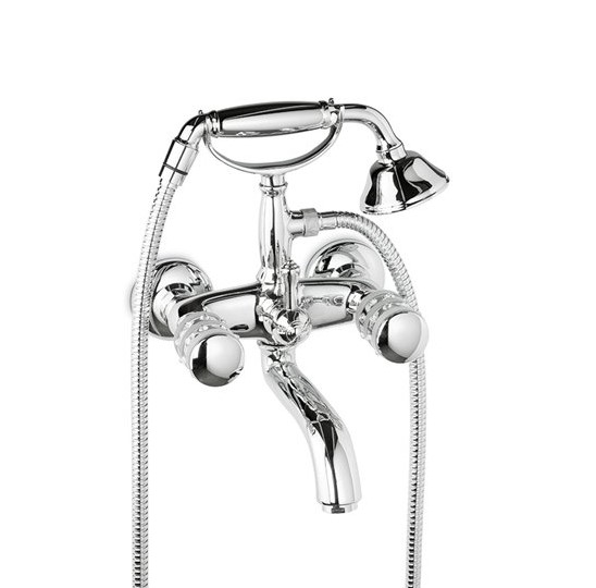 Newform Deluxe Prestige Bateria wannowa ścienna z mechanicznym przełącznikiem wanna/prysznic i zestawem prysznicowym chrom 68140C.21.018