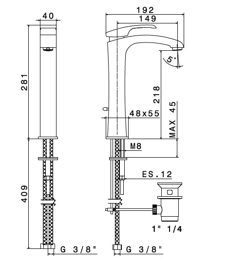 Newform X-Sense Bateria umywalkowa jednootworowa z korkiem wysoka chrom 62513.21.018