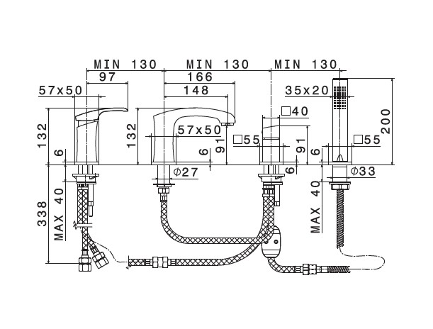 Newform X-Sense Bateria wannowa 4-otworowa na brzeg wanny chrom 62582C.21.018