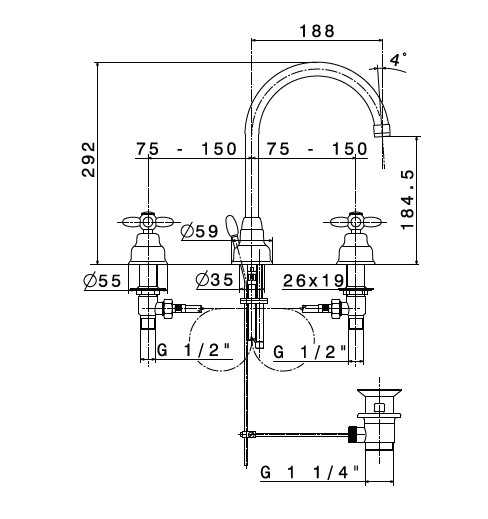 Newform Antea Bateria umywalkowa 3-otworowa z korkiem z wysoką wylewką chrom 9100.21.018