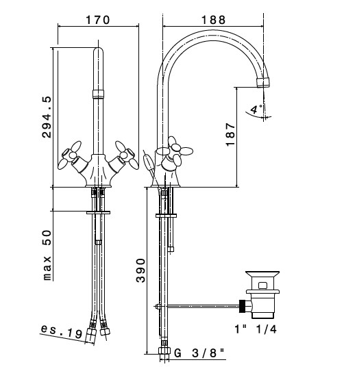 Newform Antea Bateria umywalkowa jednootworowa z korkiem z wysoką wylewką chrom 9120.21.018