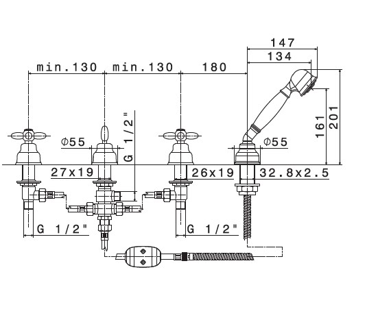 Newform Antea Bateria wannowa 4-otworowa na brzeg wanny chrom 9165.21.018