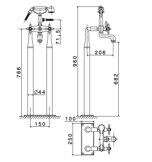 Newform Antea Bateria wannowa podłogowa z kolumnami z zestawem prysznicowym chrom 9170.21.018