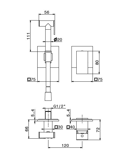Newform Idroscopini Bidetka jednouchwytowa ścienna ze słuchawką i wężem część zewnętrzna chrom 884.21.018
