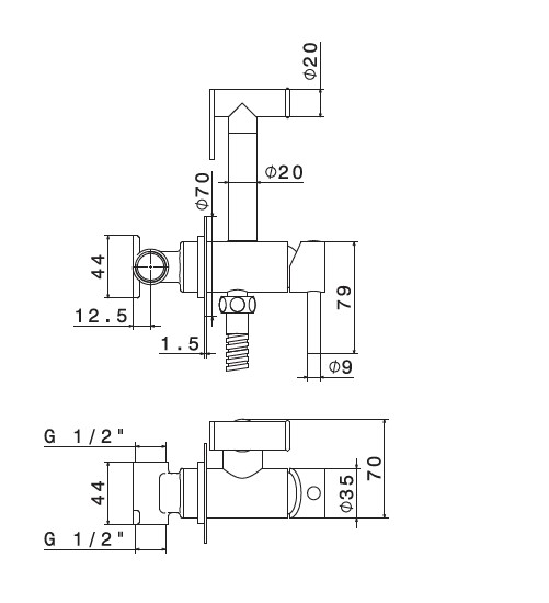 Newform Idroscopini Bidetka jednouchwytowa podtynkowa ze słuchawką i wężem chrom 27720.21.018