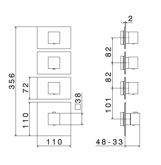 Newform Multiutenza Bateria prysznicowa termostatyczna podtynkowa z trzema wyjściami część zewnętrzna chrom 67640E.21.018