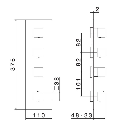 Newform Multiutenza Bateria prysznicowa termostatyczna podtynkowa z trzema wyjściami część zewnętrzna chrom 67643E.21.018