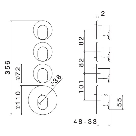 Newform Linfa II Bateria prysznicowa termostatyczna podtynkowa z trzema wyjściami część zewnętrzna chrom 67630E.21.018