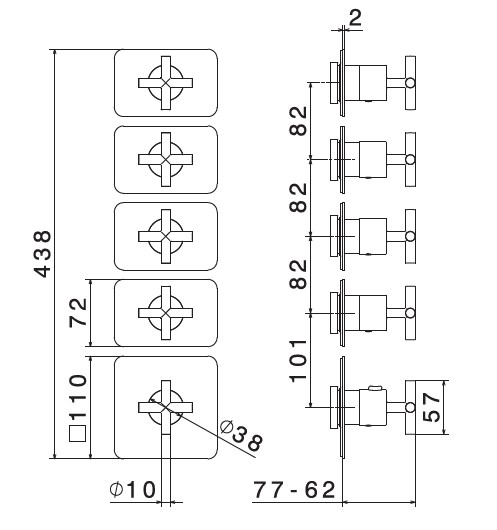Newform Blink luxury Bateria prysznicowa termostatyczna podtynkowa z czterema wyjściami z teksturą część zewnętrzna chrom 69821E.21.018