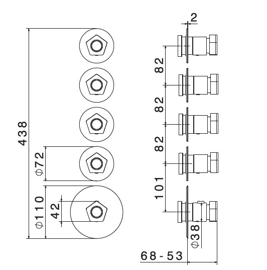 Newform Park L.E. Bateria prysznicowa termostatyczna podtynkowa z czterema wyjściami część zewnętrzna chrom/czarny mat 69801E.05.093