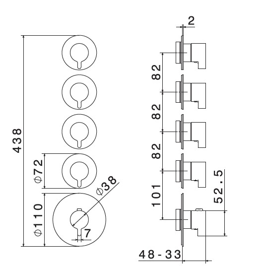 Newform Ergo Bateria prysznicowa termostatyczna podtynkowa z czterema wyjściami część zewnętrzna chrom 67621E.21.018