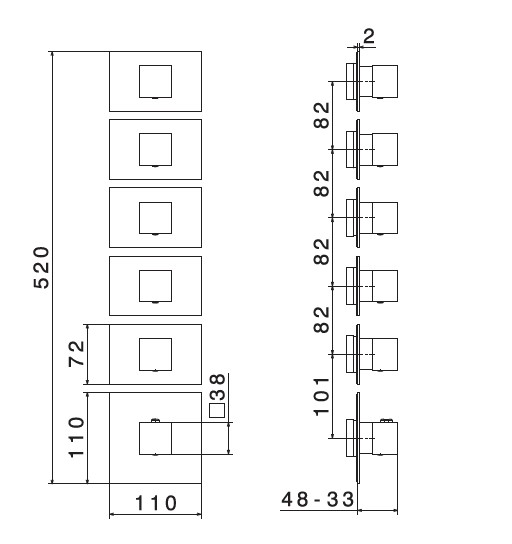 Newform Multiutenza Bateria prysznicowa termostatyczna podtynkowa z pięcioma wyjściami część zewnętrzna chrom 67642E.21.018