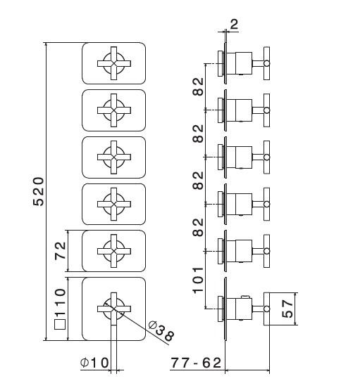 Newform Blink luxury Bateria prysznicowa termostatyczna podtynkowa z pięcioma wyjściami z teksturą część zewnętrzna chrom 69822E.21.018