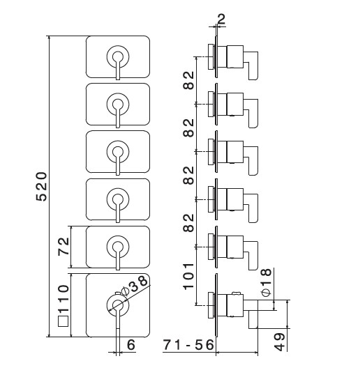 Newform Blink Chic Bateria prysznicowa termostatyczna podtynkowa z pięcioma wyjściami część zewnętrzna chrom 69832E.21.018