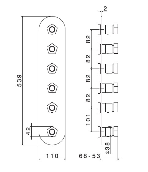 Newform Park L.E. Bateria prysznicowa termostatyczna podtynkowa z pięcioma wyjściami część zewnętrzna chrom/czarny mat 69805E.05.093