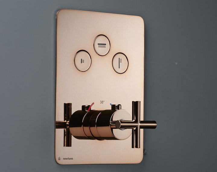 Newform Blink Bateria prysznicowa termostatyczna podtynkowa z trzema wyjściami część zewnętrzna miedziany brąz PVD 70412E.58.061