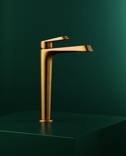 Newform Nio Bateria umywalkowa jednouchwytowa wysoka do umywalki nablatowej jedwabiste złoto 68915.35.099