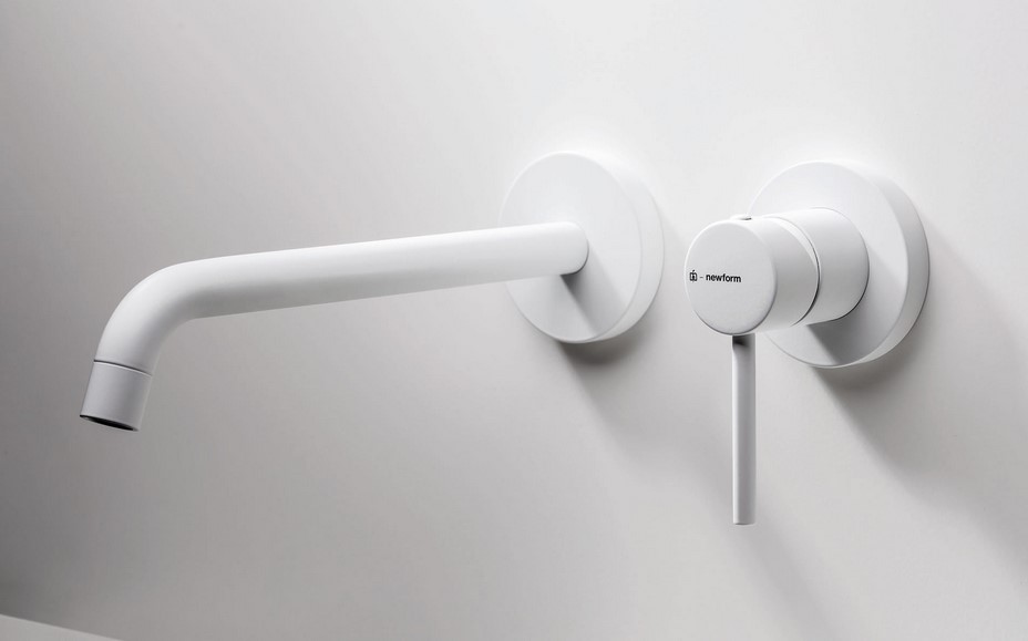 Newform XT Bateria umywalkowa ścienna jednouchwytowa z długą wylewką część zewnętrzna biały mat 4230E.01.014