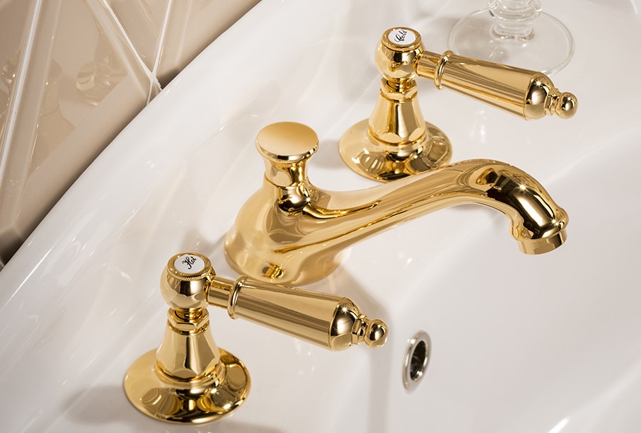 Newform Daytime Style Bateria umywalkowa 3-otworowa z korkiem z niską wylewką złoty 69105.66.019