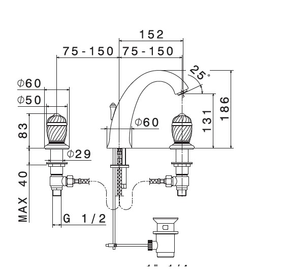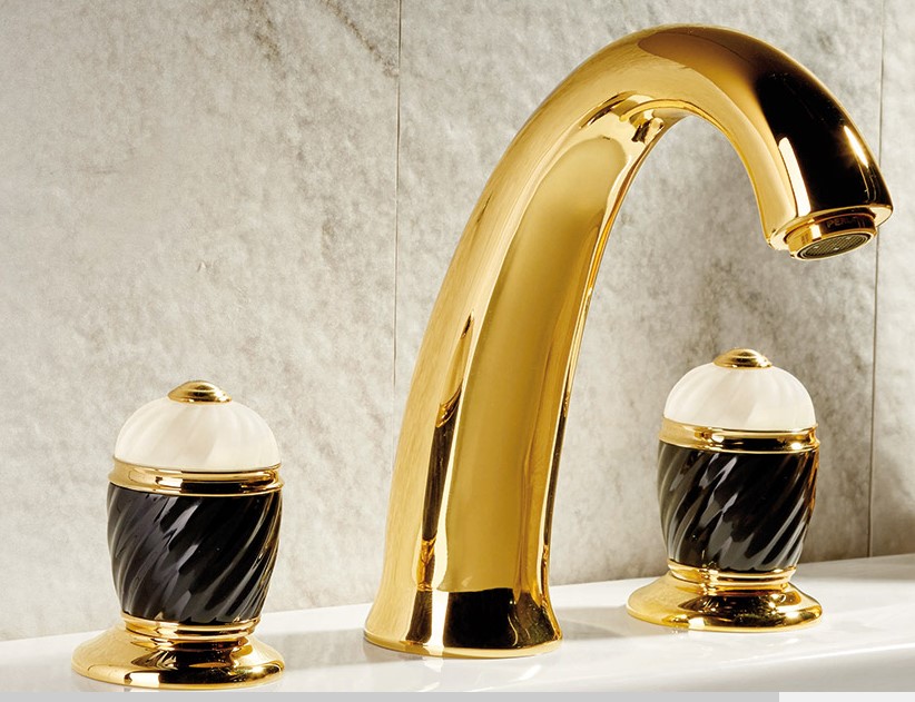 Newform Deluxe Bateria umywalkowa 3-otworowa z korkiem złoty 68005.61.020