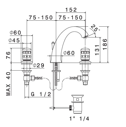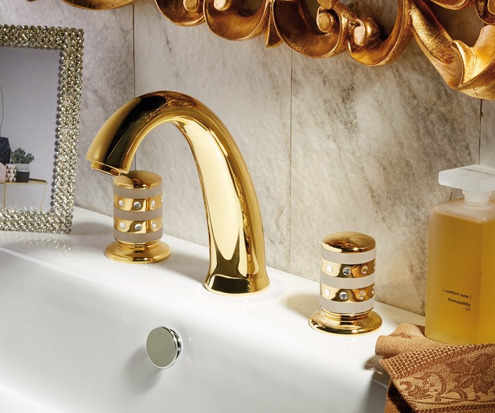 Newform Deluxe Prestige Bateria umywalkowa 3-otworowa z korkiem złoty 68105.61.020