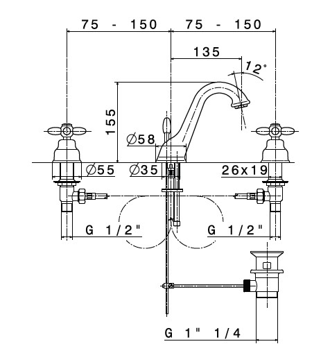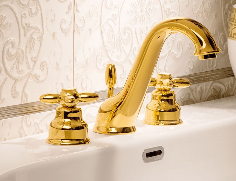 Newform Antea Bateria umywalkowa 3-otworowa z korkiem z małą wylewką złoty 9105.61.020