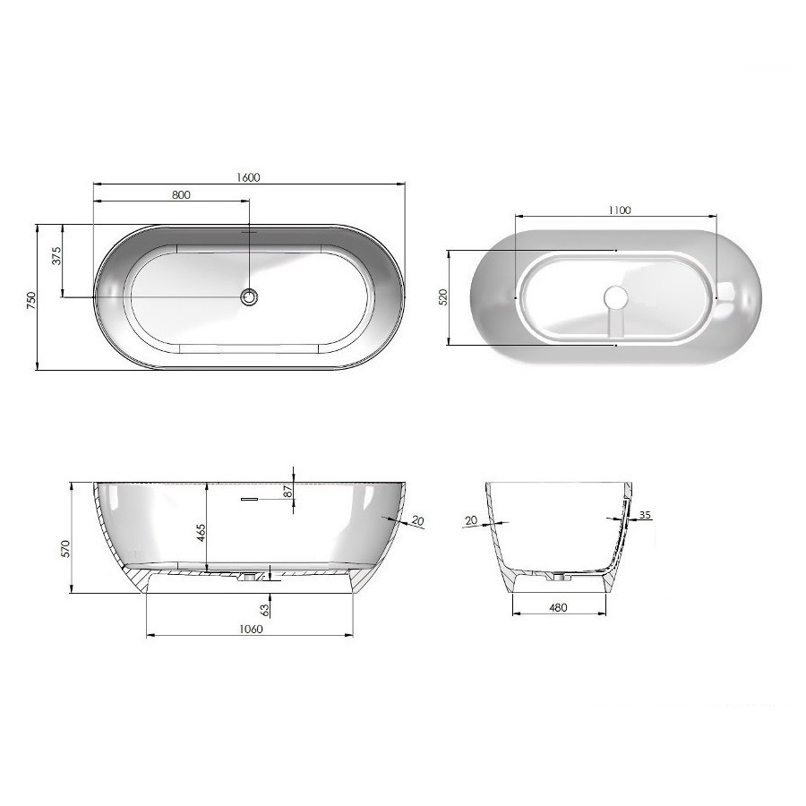 Istnieje możliwość zamówienia wanny w całości, w kolorze creme i grey, wykończenie mat lub połysk