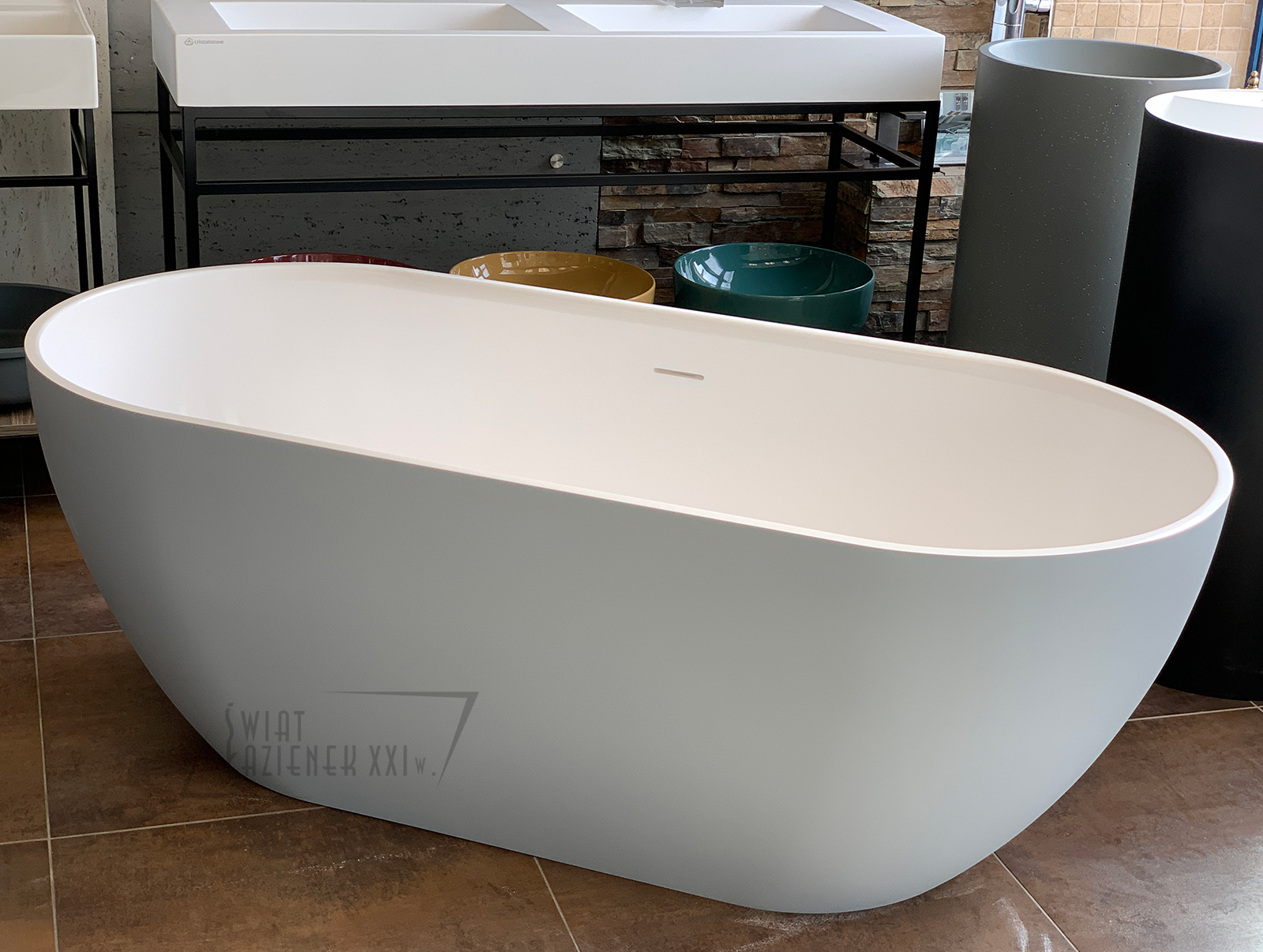 W komplecie: syfon i korek w kolorze wanny