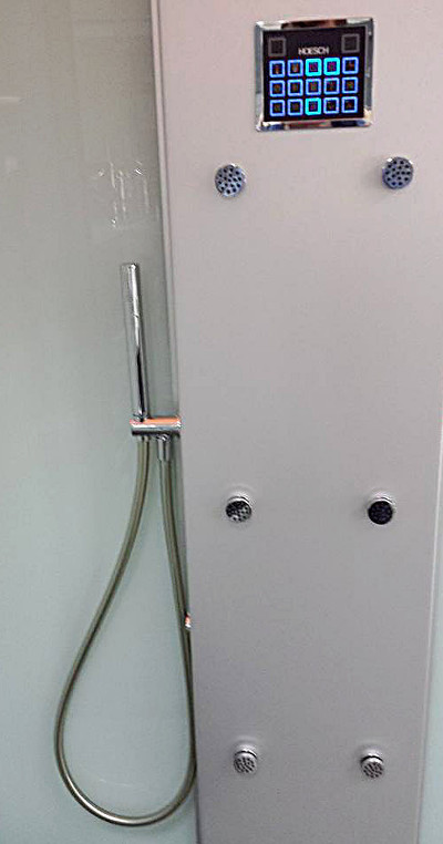 słuchawki, deszczownicy (15 l/min), 6 regulowanych dysz na plecy (6 x 3 l/min) z funkcją masażu szkockiego, termostat 1/2“, 1 zawór zamykający.