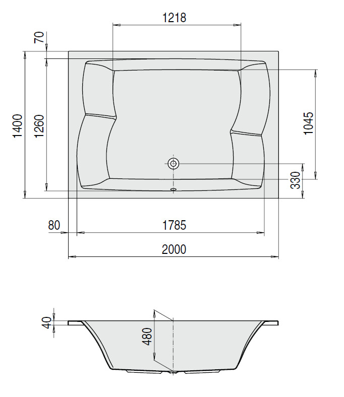 Komfortowe wnętrze, dogodne głębokości i odpływ na środku wanny sprawiają, że wspólna kąpiel staje się prawdziwą przyjemnością.