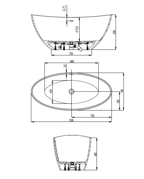Hoesch Namur Wanna wolnostojąca 1500 x 700 mm biały mat 4405.013305