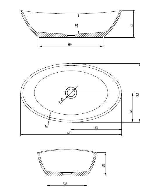 Hoesch Namur Umywalka stawiana 60x35 biały 4411.010