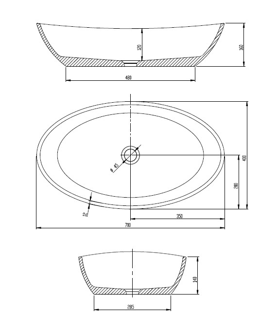 Hoesch Namur Umywalka stawiana 70x40 biały 4412.010