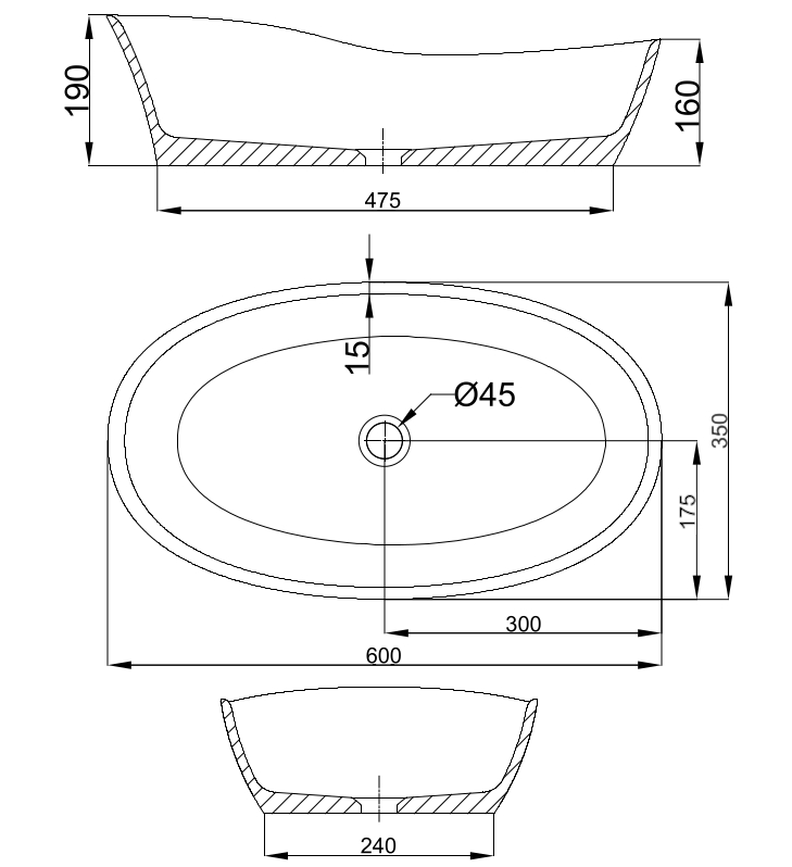 Hoesch Namur Lounge Umywalka stawiana 60x35 biały 4421.010