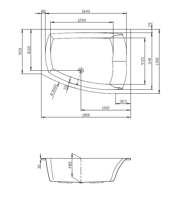 Hoesch Largo Wanna asymetryczna prawa do zabudowy 1800x1300 mm biały 3693.010