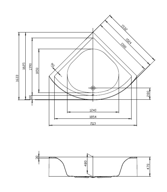 Hoesch Scelta Wanna narożna do zabudowy z obudową 1500x1500 mm biały 3677.010