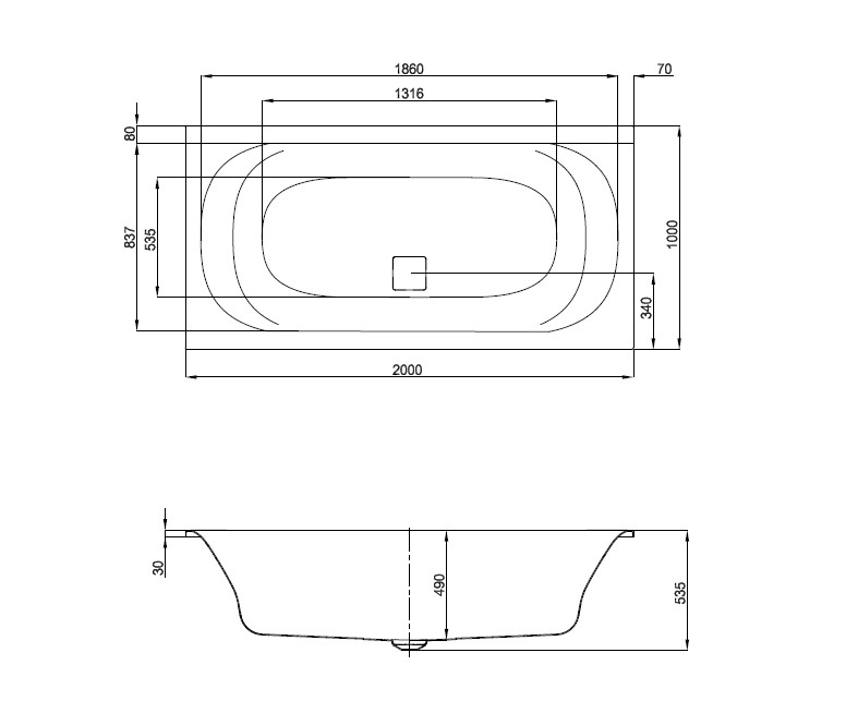 Hoesch Thasos Wanna do zabudowy 2000x1000 mm biały 3742.010