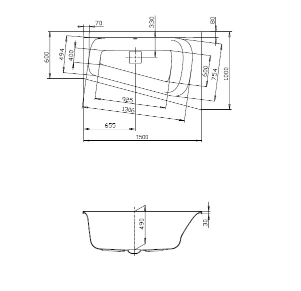 Hoesch Thasos Wanna trapezowa prawa do zabudowy 1500x1000 mm biały 3746.010