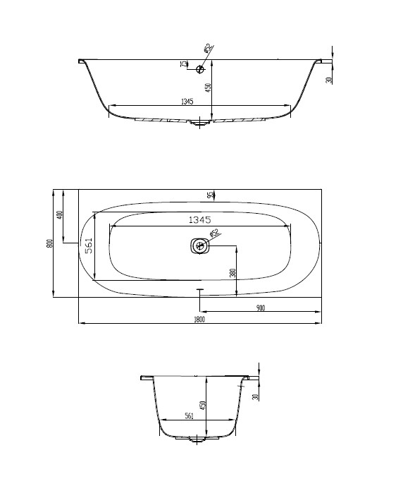 Hoesch iSensi wanna przyścienna/narożna prawa do zabudowy 1800x800 mm biały 3850.010