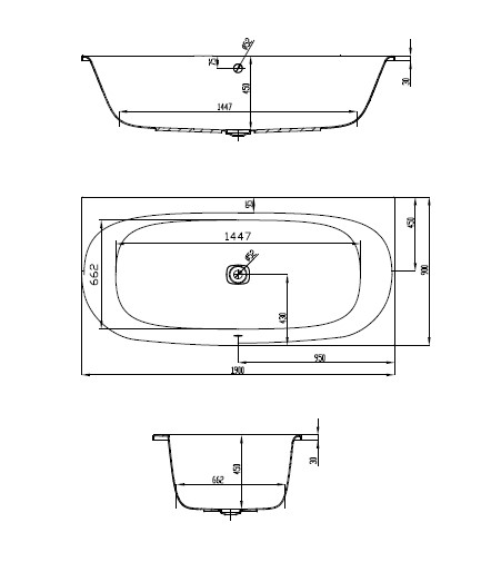 Hoesch iSensi Wanna przyścienna/narożna prawa do zabudowy 1900x900 mm biały 3842.010
