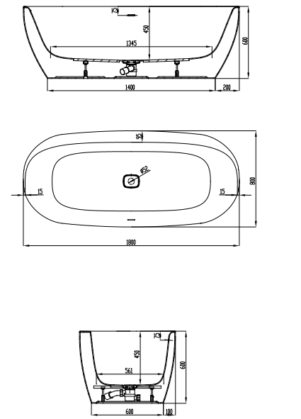 HOESCH iSensi Wanna akrylowa owalna wolnostojąca - typu monoblock z obudową, z przelewem szczelinowym 1800x800 biała 3821.010