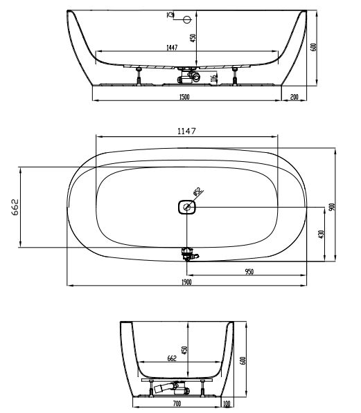 HOESCH iSensi Wanna akrylowa owalna wolnostojąca - typu monoblock z obudową, z przelewem z napełnianiem 1900x900 chrom 3852.010