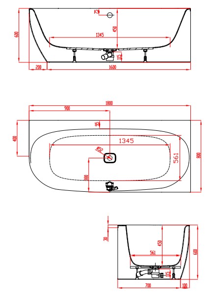 HOESCH iSensi Wanna akrylowa przyścienna/narożna prawa - typu monoblock z obudową, z przelewem z napełnianiem 1800x800 chrom 3865.010
