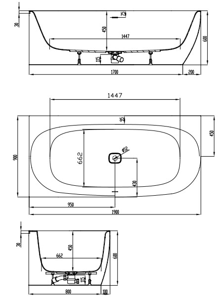 HOESCH iSensi Wanna akrylowa przyścienna/narożna lewa - typu monoblock z obudową, z przelewem szczelinowym 1900x900 biała 3825.010