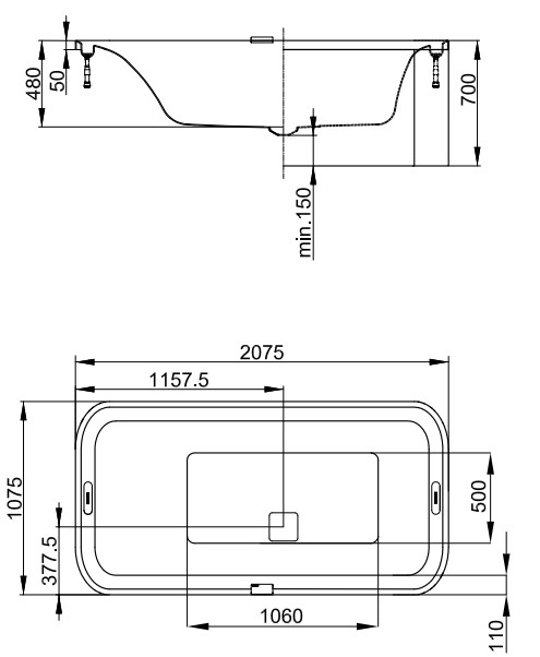 HOESCH Ergo+ Wanna akrylowa prostokątna - do zabudowy 2075x1075 biała 6436.010305