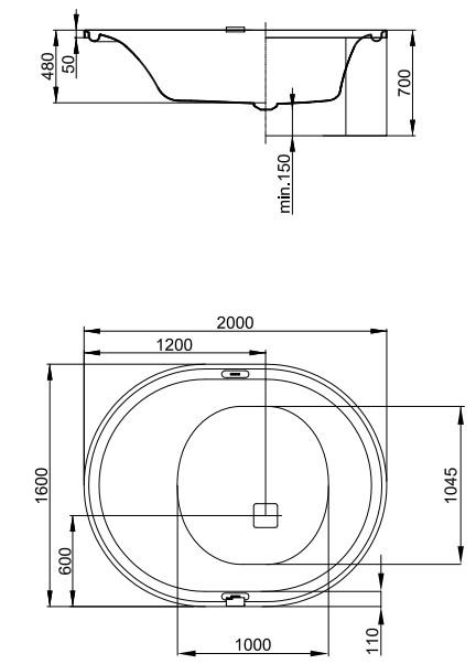 HOESCH Ergo+ Wanna akrylowa owalna - do zabudowy 2000x1600 biała 6437.010305