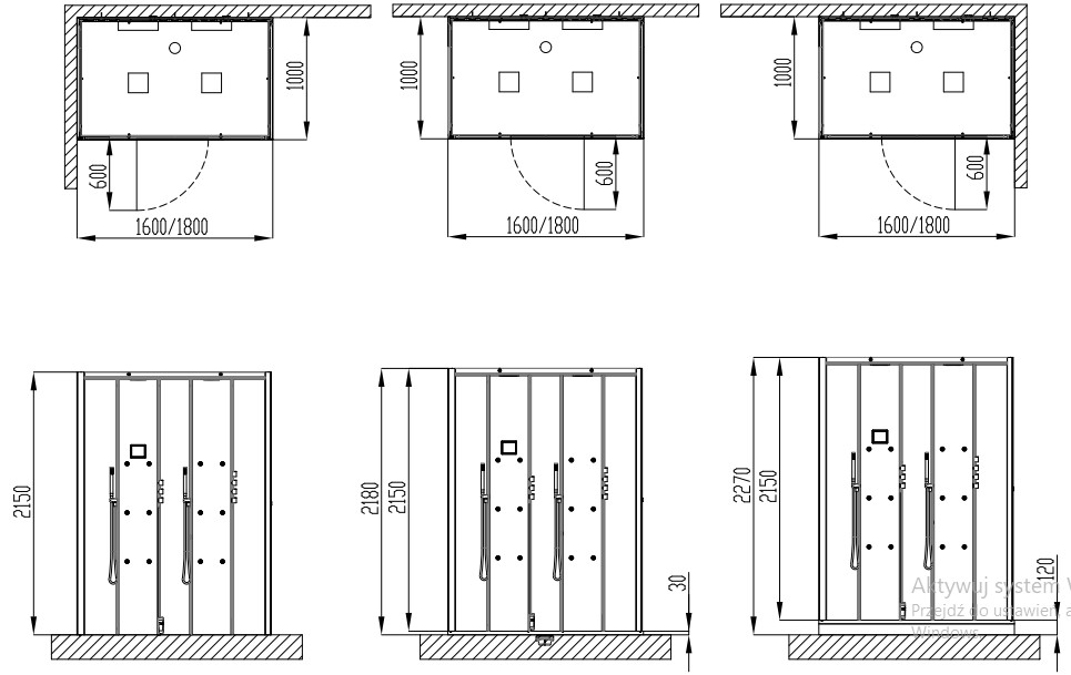 HOESCH SensePerience Kabina parowa prostokątna lewa do montażu we wnęce z brodzikiem z odlewu mineralnego 1600x1000 biała 535361xA.010550